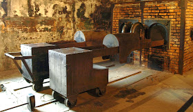 It's enough that Auschwitz, and the other death camps, are still there, open to everyone and un-whitewashed. Our Insight Vacations coach tour of Eastern Europe was WWII-centric and often very grim, but it was fascinating and educational and memorable, and I'm glad that I've done it. Especially Auschwitz: to walk through those buildings, lined with framed photos of prisoners, past the tangle of spectacles, the mounds of hair, the huge piles of shoes, all sizes, in the company of a guide whose grandfather survived Auschwitz, really focused the mind. The cells, firing range yard and gallows posts, the high electric fences, the extermination wing... and then the shower room, and the gas ovens with their clever mechanism for efficient transferral of corpse into flames: everyone should go there, and be reminded of what can happen.